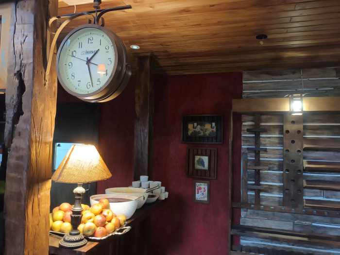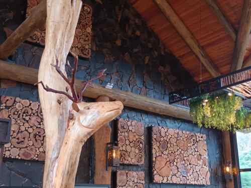 Decoração caprichada e o quadro com pintura da Serra do Corvo Branco, atração turística da cidade, e que tem o maior corte vertical em rocha no Brasil