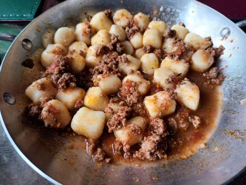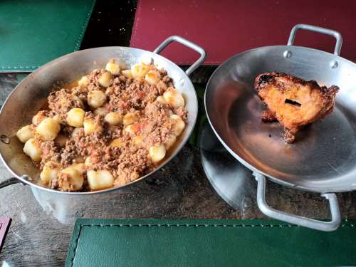 início da Sequência de comida italiana, com Gnocchi a Bolognesa, Galeto na Brasa