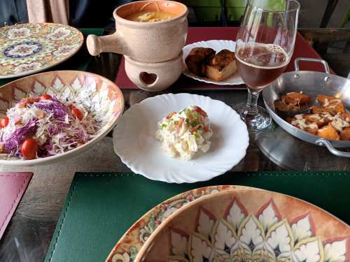 Sopa de Agnolini, Salada, Polenta Frita, Maionese de Batata, Focaccia apenas o