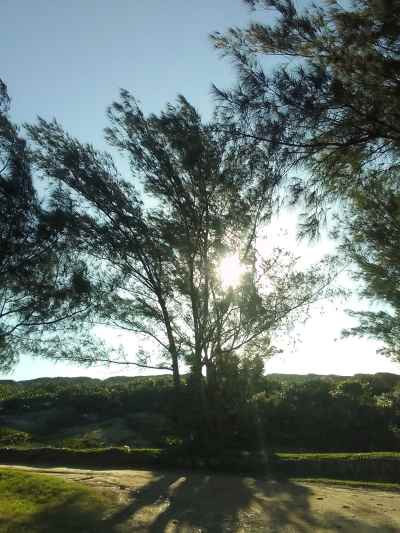 A àrvore fica junto ao Restaurante pé na areia. Flagrar o Sol entre a copa vai