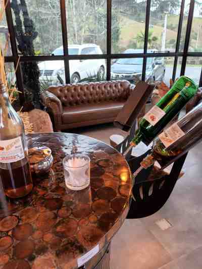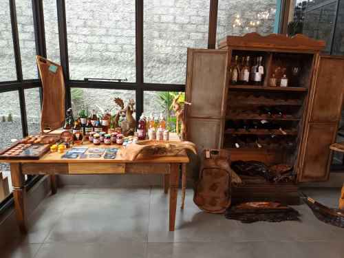 Tem ainda os Licores de produção própria. Entre outros: Jaboticaba, Menta, Tucum. E Biscoitos artesanais, de Côco e Milho.