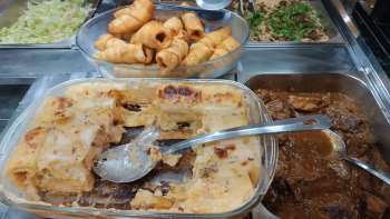 à Grécia é atração. Salgados para ninguém resistir. Espaço interno e