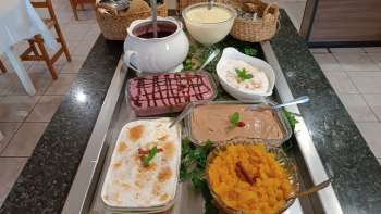Vale experimentar as delícias doces e salgadas. Tortas, Bolos, Pudim, Carolina, Biscoitos e Frutas para acompanhar Sopa(Minestrone com legumes e Frango quando fomos conferir), Empadão e Frios.