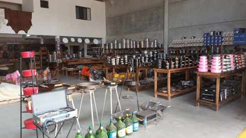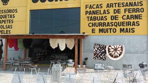 Variado Mix incluindo peças de Decoração, Bebidas, Espetos e Grelhas para Churrasco(esses, ítens quase que obrigatórios para gaúchos, como o proprietário do empreendimento), Facas Artesanais, Panelas de Ferro e Acessórios para Cozinha como Tábuas para o corte de Carnes.