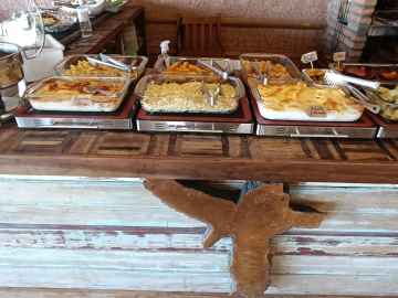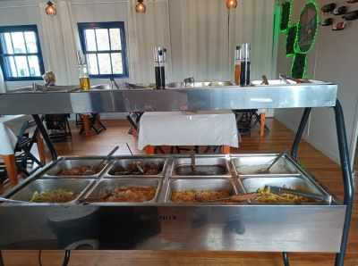 Pode ser classificado como "Um Senhor Restaurante" com farto Buffet que chega a superar os 100(cem!) ítens, salão para 450 pessoas e deck para outras 70 além do espaço de eventos para 200 pessoas
