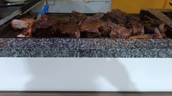 Carnes grelhadas, Buffet, novamente a grelha, até a Sobremesa