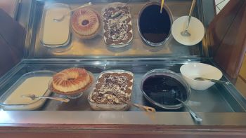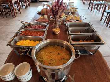 Vale experimentar as delícias doces e salgadas. Tortas, Bolos, Pudim, Carolina, Biscoitos e Frutas para acompanhar Sopa(Minestrone com legumes e Frango quando fomos conferir), Empadão e Frios.