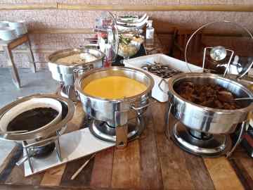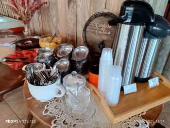 Buffet inclui Café, Leite , Chocolate Quente cremoso e Suco.